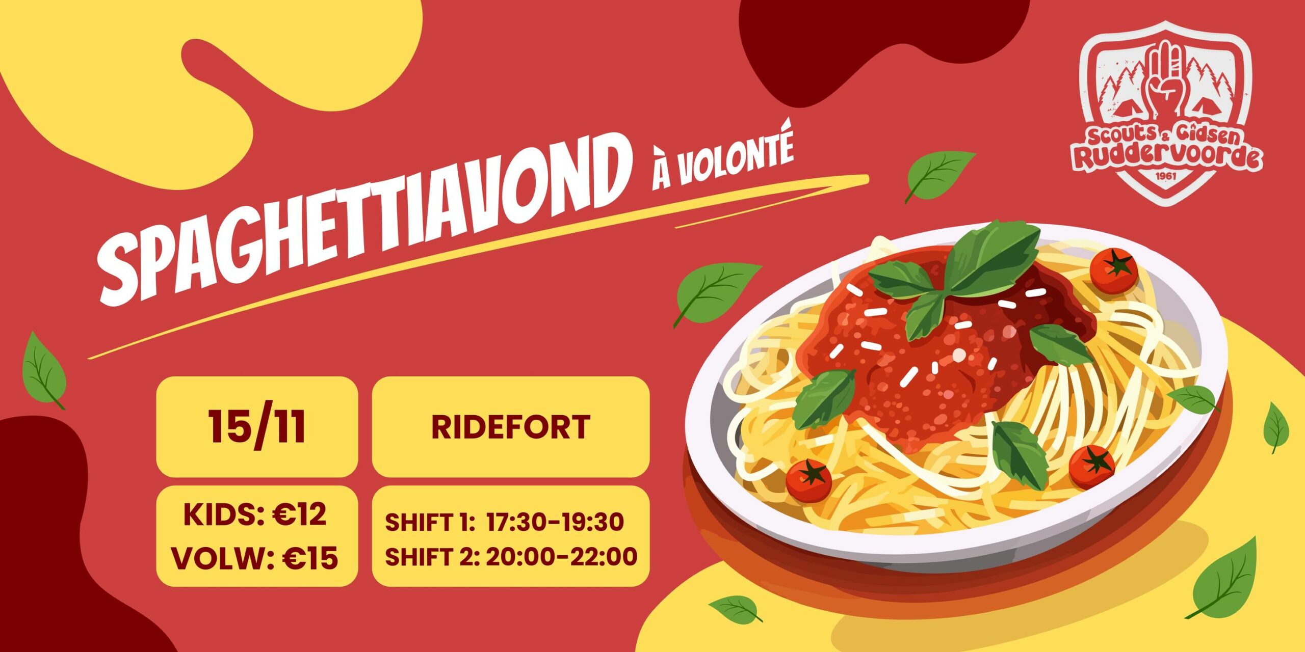 Op zaterdag 15 november staat onze jaarlijkse spaghettiavond opnieuw op de planning. Een avond vol sfeer, gezelligheid en spaghetti voor jong en oud!